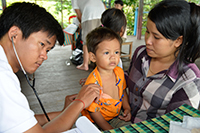 Soutien médical Les dépenses liées à la santé étant une des premières causes de pauvreté au Cambodge, Osmose a cherché à fournir une assistance médicale aux plus démunis grâce à des partenariats. Ainsi, depuis 2004, des équipe médicales de l'Angkor Hospital for Children, l'association HAMAP et de Mission Enfant 2000 se rendent dans les villages lacustres du projet, |
